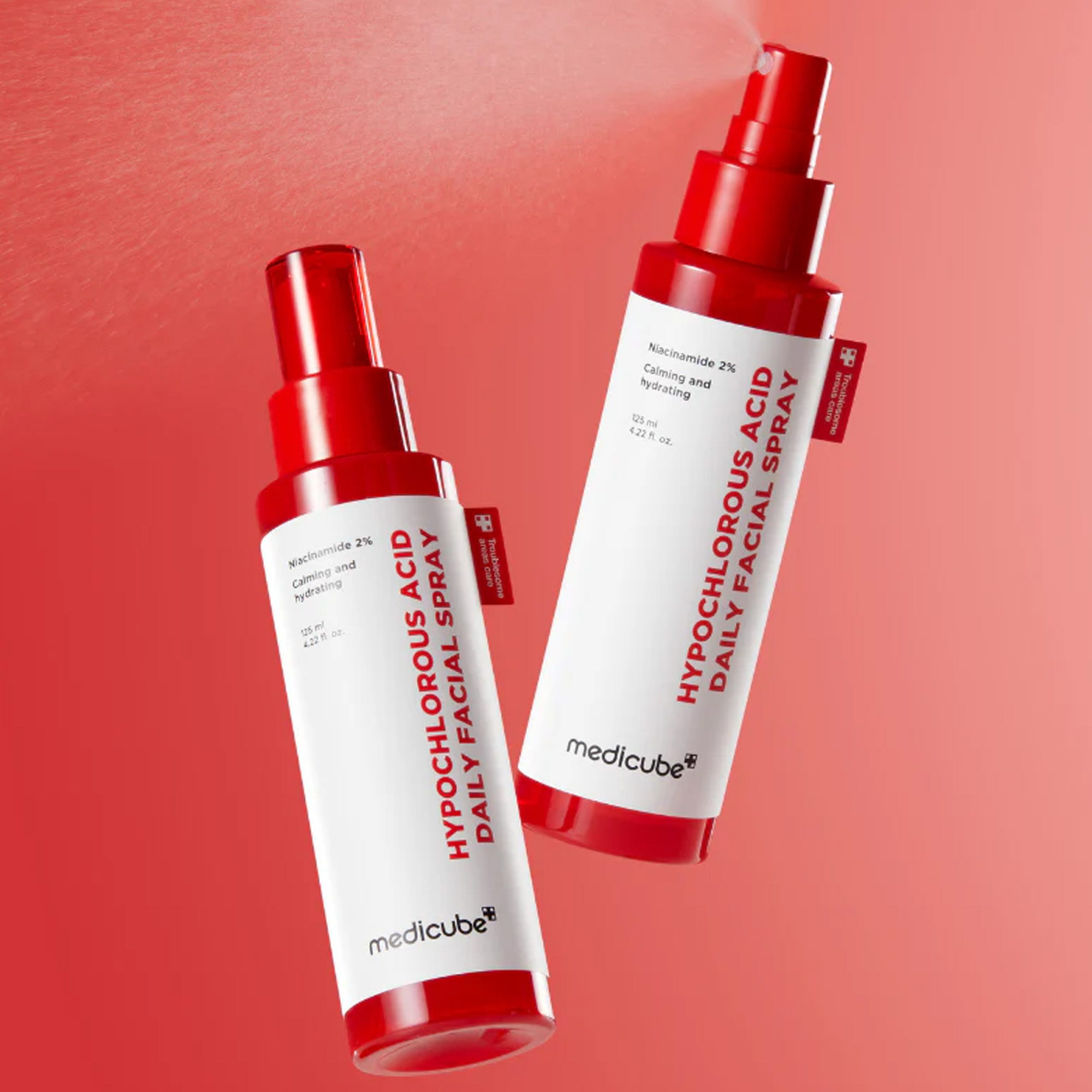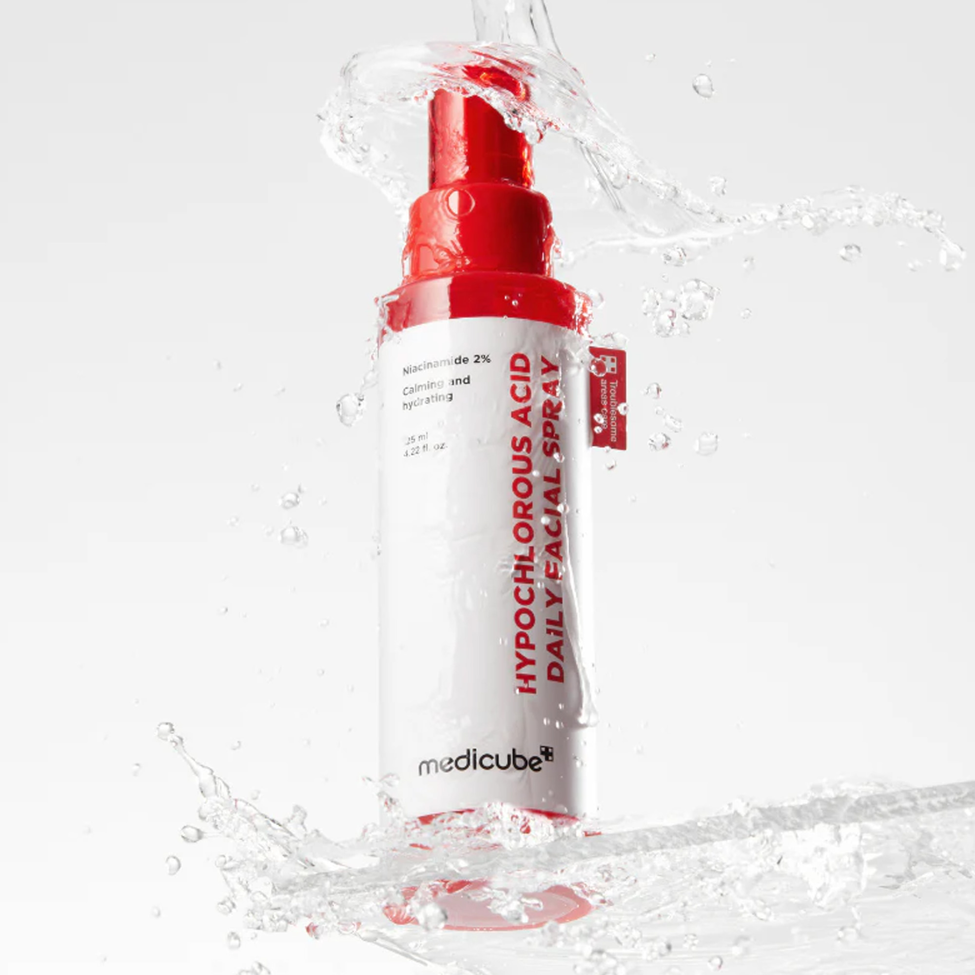 MEDICUBE Hypochlorous Acid Daily Facial Spray je jemný pleťový sprej určený pro rychlé zklidnění, osvěžení a hygienickou péči o pleť během dne. Hlavní složkou je kyselina chlorná (HOCl), která se přirozeně vyskytuje i v lidském těle a je využívána pro snížení množství bakterií na pokožce.