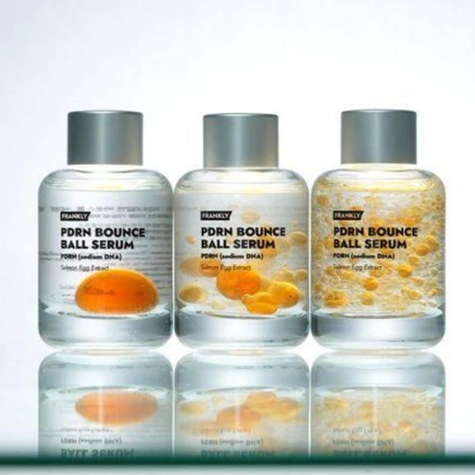 FRANKLY PDRN Bounce Ball Serum je unikátní sérum, které obsahuje velkou oranžovou kapsli („bounce ball“) plnou aktivních látek. Před použitím se musí protřepat, aby se kapsle rozbila a proměnila v aktivní sérum.
